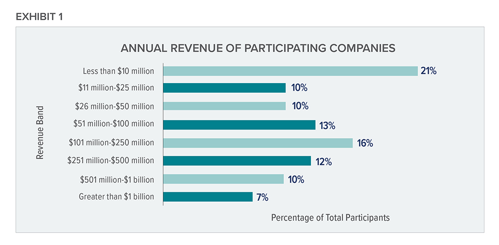 The 2025 Private Company Board Compensation and Governance Survey includes a robust dataset of 633 respondents who certified their data in April 2025 and provides an up-to-date analysis of director pay practices in the current competitive environment. About half of the survey respondents represent family-owned or -controlled companies. Another 17% of respondents represent closely held companies, 18% represent private equity-owned companies and 10% represent companies owned by employee stock ownership plans (ESOPs). The survey respondents span diverse industries and a broad range of revenue sizes, as is shown in Exhibit 1.